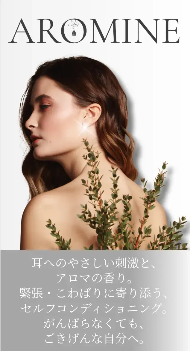 AROMINEは、耳へのやさしい刺激と、アロマの香りを組み合わせた唯一無二の「メディ*・アロマイヤーフック」。